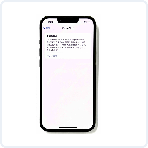 画面が非純正品に交換されている、映らない、または操作困難な状態。